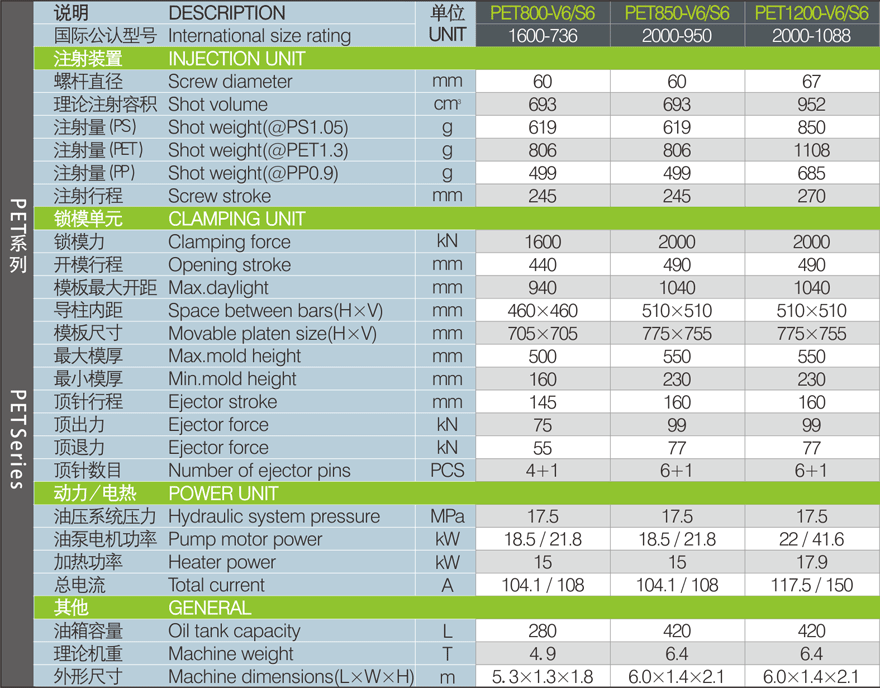 提供PET瓶坯全方位完善而成熟的解決方案,注射量從800-4500g的50多款不同規(guī)格型號PET瓶坯專用注塑機(jī)。