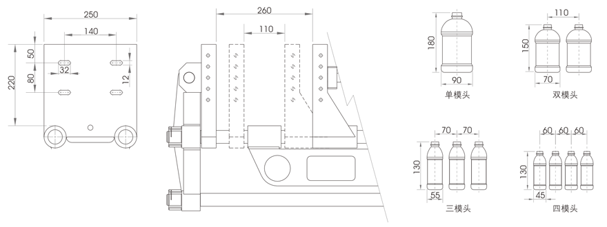 模架尺寸及適應(yīng)瓶型(mm):