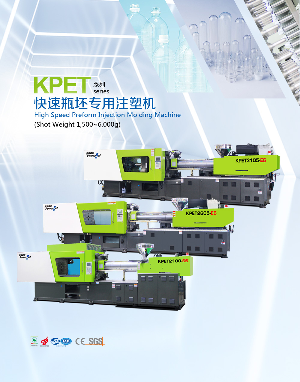 寶捷公司自2000年成立以來,始終專注于節(jié)能、高效、精密、穩(wěn)定為核心的注塑設(shè)備,也是業(yè)內(nèi)較早涉足高速PET瓶坯領(lǐng)域的專用機(jī)器制造商。經(jīng)過多年的努力,我司在全國PET專用注塑機(jī)領(lǐng)域享有卓越地位,占據(jù)著領(lǐng)先的市場份額。目前已擁有PET專用機(jī)型注射量從800g-6,000g的完備產(chǎn)品線,從主機(jī)更多選擇,到模具、機(jī)械手以及干燥系統(tǒng)等輔助設(shè)備的完善配套,提供給不同產(chǎn)量需求的客戶貼心的服務(wù),為全方位滿足PET瓶坯注塑這一專業(yè)細(xì)分市場而提供成熟的解決方案。