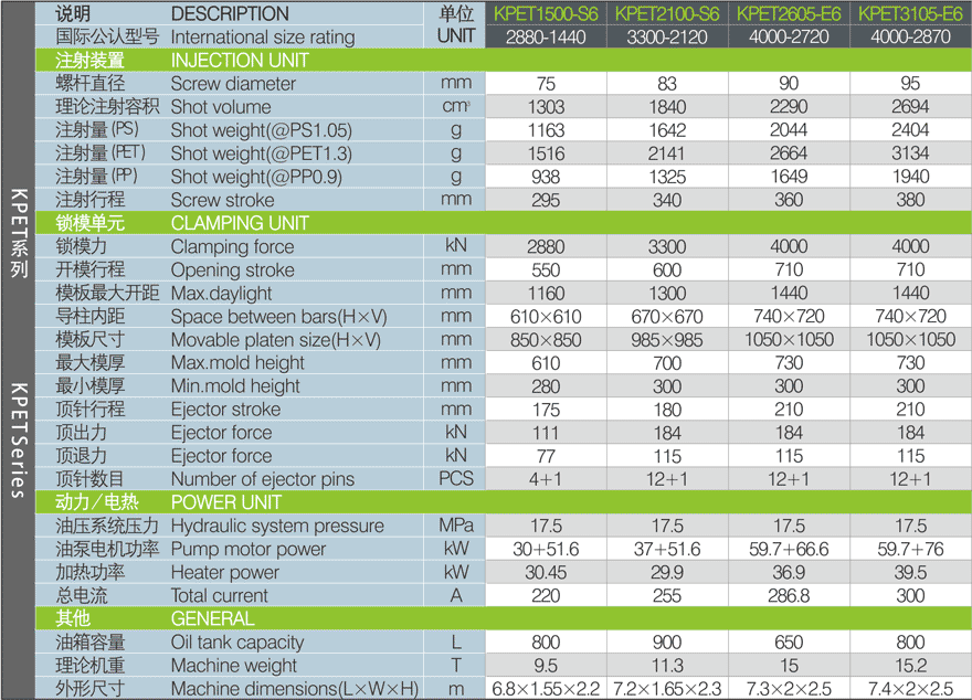 提供PET瓶坯全方位完善而成熟的解決方案,注射量從800-6000g的50多款不同規(guī)格型號PET瓶坯專用注塑機(jī)。